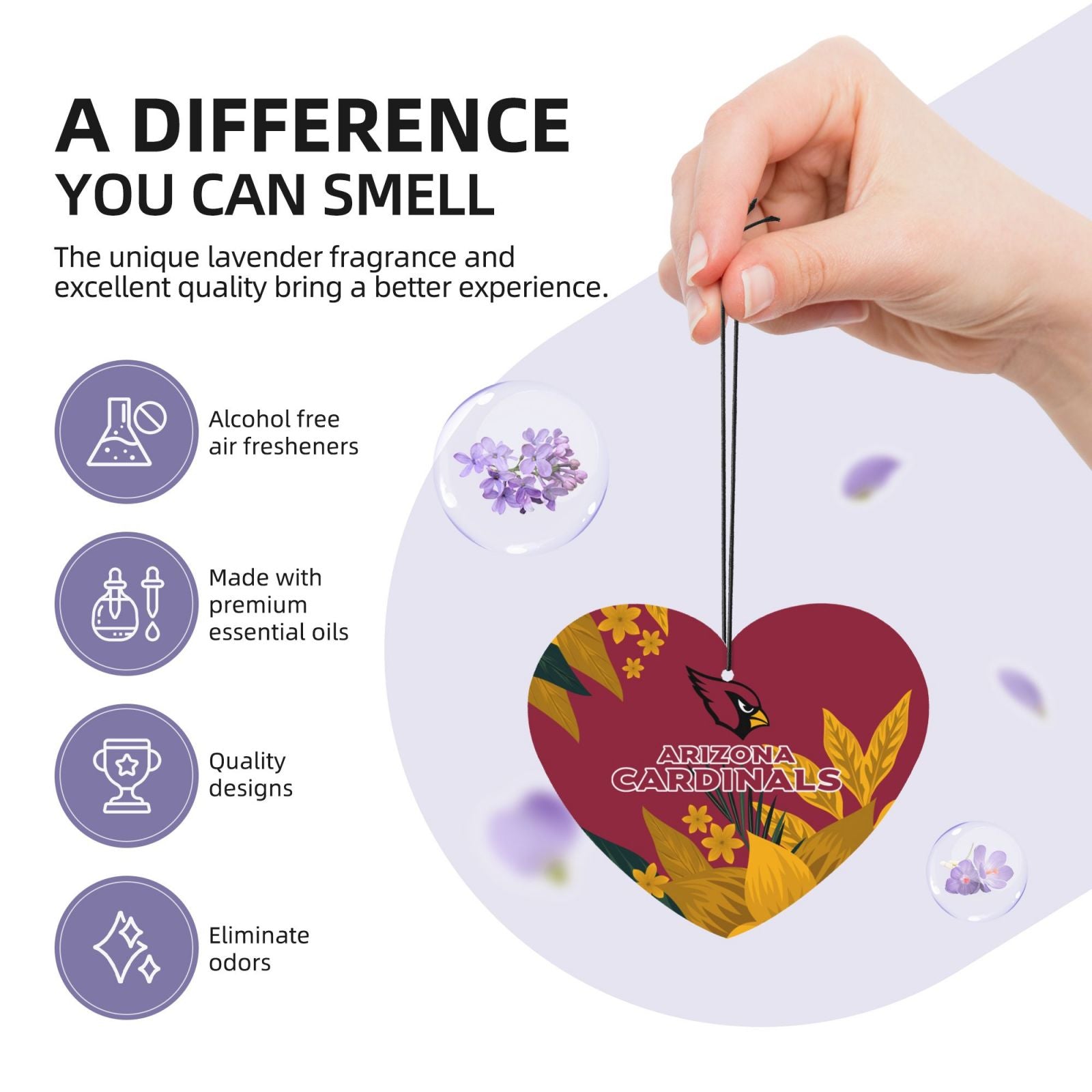 【 Design Description 】 Two sided full width printing, 【 Material Description 】 Offset Paper, 【 Product Performance 】 The operation is simple and convenient, and the fragrance tablets can not only be used for car decoration, but also for refreshing the air. It can be directly hung in the necessary places, such as, bedrooms, wardrobes, shoe cabinets, cars, etc. Tear off the packaging to use. Fragrant tablets are long-lasting, fresh, beautiful, and practical. Reasonable size, light weight, durable, and can be used with confidence., 【 Applicable scenarios 】 Suitable for use in vehicles, rooms, bathrooms, headboards, and other places., 【 Accessory Structure 】 Four aromatherapy patches (lavender scent, including hanging rope and plastic wrap)., [Washing instructions] Do not wash with water, do not wipe., [Special note] Due to different measurement methods, the error in this size data is within 0.5cm., 【 Reminder 】 The display effect of this picture is for reference only, and the final effect is subject to the actual product! Due to objective factors such as production batches, machinery and equipment, it is difficult to avoid, or there may be slight color differences, position and size errors. If these problems occur, they are normal phenomena and will not be included in the scope of after-sales treatment.,