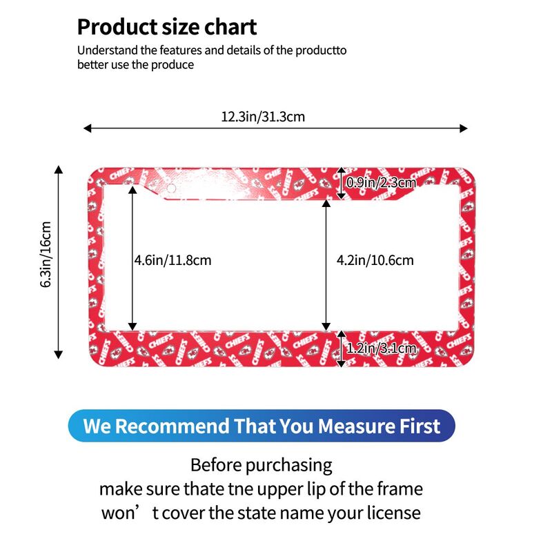 Kansas City Chiefs Print front rear license plate holder circular hole license plate holder (one pair)